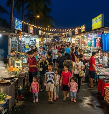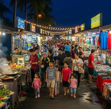 Night markets: The pasar malam rotates locations daily across Langkawi, offering local delicacies like satay, nasi lemak, apam balik, and fresh tropical fruits.