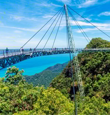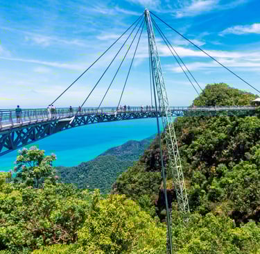 Langkawi Sky Bridge: A spectacular curved pedestrian bridge suspended high above Gunung Mat Cincang, offering breathtaking views of the rainforest and sea. The cable car ride to reach it is an experience on its own.